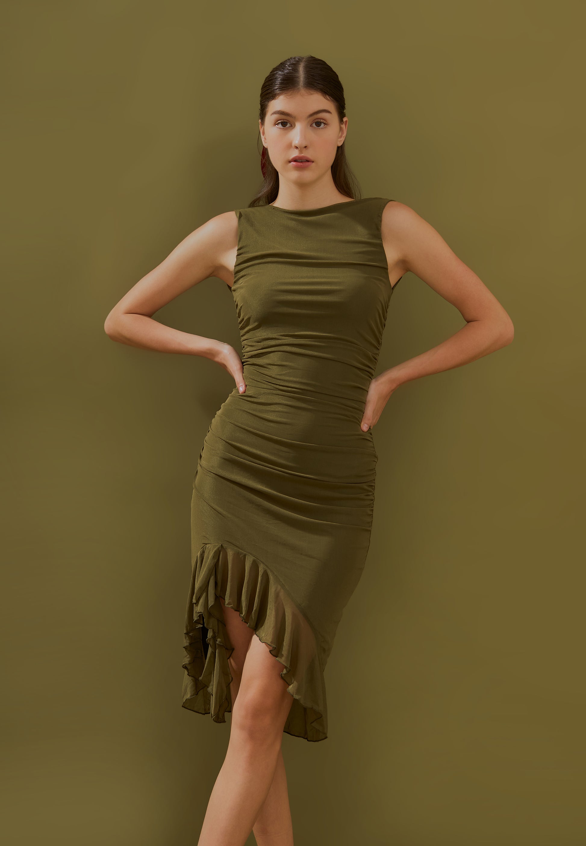 Ruffle Detail Midi Dress